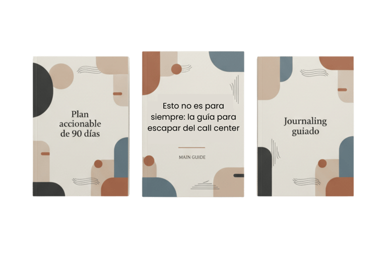 “Esto no es para siempre: la guía para escapar del call center”, es un eBook práctica que te enseña paso a paso cómo salir del call center y conseguir trabajo remoto o freelance, incluso si crees que no sirves para esto o que es solo para unos pocos.